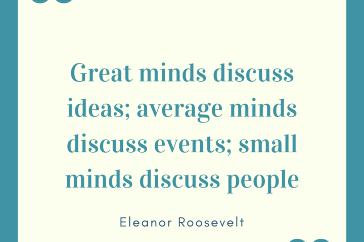 Eleanor Roosevelt once said, “Great minds discuss ideas; average minds discuss events; small minds discuss people.” Ah, Eleanor, nothing will ever knock you off your perch as my hero, but I’ve got to challenge you for a moment on this one . . . I’m convinced even great minds occasionally discuss events. I’m sure, for...